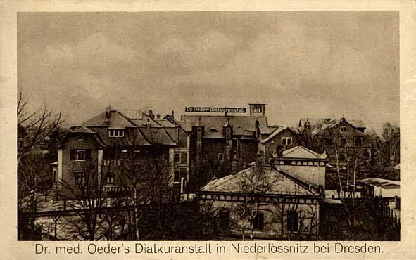 1925 , 14. Febr.: Wegen Nichtbesitzes einer Konzession zur Führung der Kuranstalt wird in der Strafsache gegen die Besitzerin Annamaria verw. Dr. Oeder eine Strafe von 50 Mark oder 5 Tage Haft ausgesprochen.