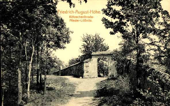 Aus der Rede des Gemeindevorstandes von Niederlößnitz Hans: "...Die Erinnerung an diesen Festtag wird in unseren Herzen fortleben, sie soll aber auch festgehalten werden äußerlich dadurch, daß wir Ew. Majestät um die Allerhöchste Genehmigung bitten, den neugeschaffenen Promenadenplatz oben auf unseren Bergen unweit der Friedensburg, mit seinen prachtvollen Aus- und Fernblick " König-Friedrich-August-Höhe " nennen zu dürfen."