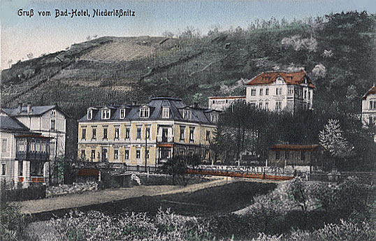 1886 Emil Fr. Müller ist Hotel- und Weinbergsbesitzer, auch Besitzer der Friedensburg. Das Badhotel wechselt in den folgenden Jahren mehrmals Besitzer und Pächter.