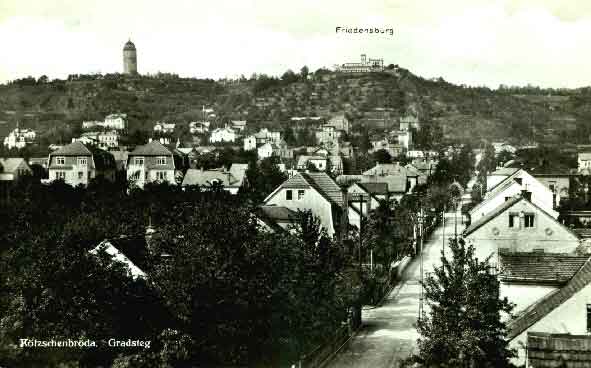 Der Name des Weges ist schon äußerlich durch seine schnurge-rade Richtung zu er-kennen. Er ist der älteste und kürzeste Verbin-dungsweg zwischen dem Marktort Kötzschenbroda und seiner Win-zergemeinde. Der Name Gradsteg, der jahr-hundertelang unbebaut blieb, und erst um die Mitte des 19.Jahrh. besiedelt wurde, bezieht sich auf anliegende Weinberge (1630, "der gerade Steigk").