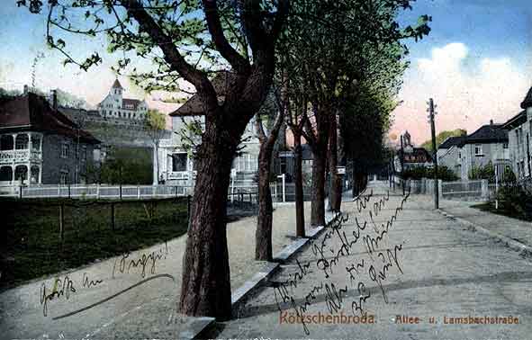 Ehemals war die Straße ein mit Kastanien umrahmter breiter Zu-fahrtsweg, der schnurgerade von der 1788 erbauten "Meißner Chaussee" zur Mitte des alten Herrenhauses "Altfriedstein" führ-te, und soll schon um die Mitte des 17.Jahrh. angelegt worden sein.
